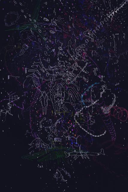 “A partir das minhas relações e reflexões de estar numa metrópole complexa como São Paulo, o desenho foi assumindo um caráter mais cartográfico, caótico, evidenciando também a minha condição de nordestino, negro, árabe, gay , assim como o meu posicionamento objetivo e subjetivo dentro dessa grande centrifuga”, define Gandhi.